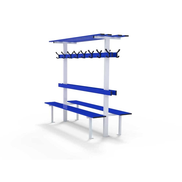 Băng ghế gắn nền có lưng tựa, thanh móc đồ và giá để đồ, dài 2m