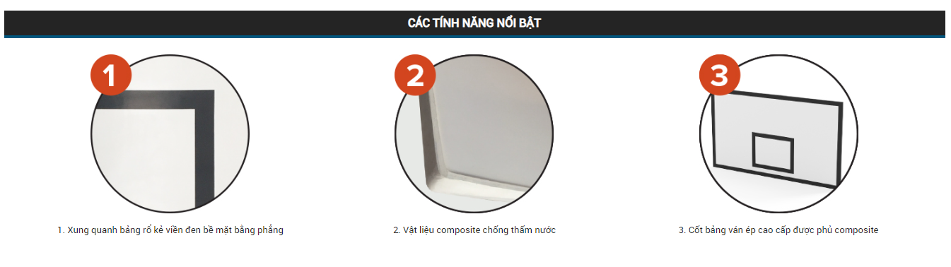 - Bảng rổ bằng ván gỗ, bề mặt phủ lớp sợi thủy tinh (composite)