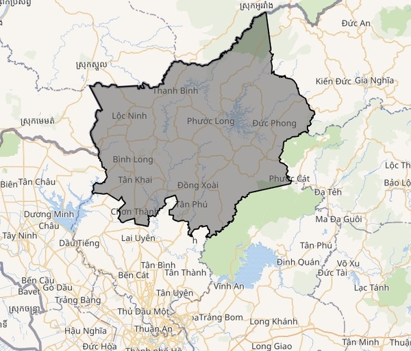 Bình Phước là tỉnh thuộc vùng Đông Nam Bộ, Việt Nam. Đây là tỉnh có diện tích lớn nhất Nam Bộ. Tỉnh lỵ của Bình Phước là thành phố Đồng Xoài, cách Thành phố Hồ Chí Minh khoảng 121 km theo đường Quốc lộ 13 và Quốc lộ 14 và 102 km theo đường Tỉnh lộ 741. Bình Phước là tỉnh nằm trong Vùng kinh tế trọng điểm Nam bộ có 240 km đường biên giới với Vương quốc Campuchia trong đó 3 tỉnh biên giới gồm Tbong Khmum, Kratie, Mundulkiri, tỉnh là cửa ngõ đồng thời là cầu nối của vùng với Tây Nguyên và Campuchia.