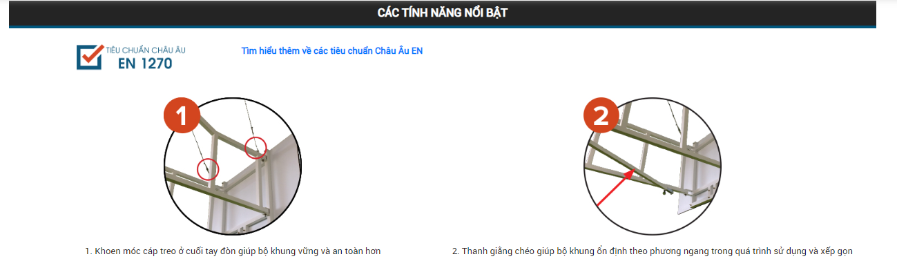 Phần trên khung được gắn với 2 sợi cáp nhằm gia tăng sự an toàn khi sử dụng