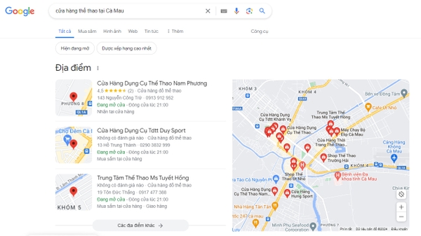 | 2 | Cửa hàng dụng cụ thể thao Duy Sport | 0290 3832 999 | Thành phố Cà Mau, 13 Hồ Trung Thành, Phường 7, Cà Mau | Chuyên cung cấp dụng cụ thể thao chính hãng |