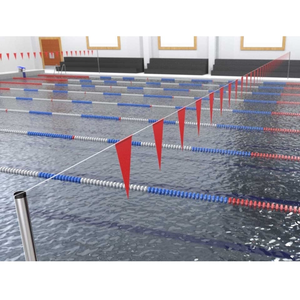 Cờ hiệu hồ bơi được căng ngang cách 2 đầu hồ bơi 5m dùng để thông báo vận động viên chuẩn bị quay vòng bơi ngửa