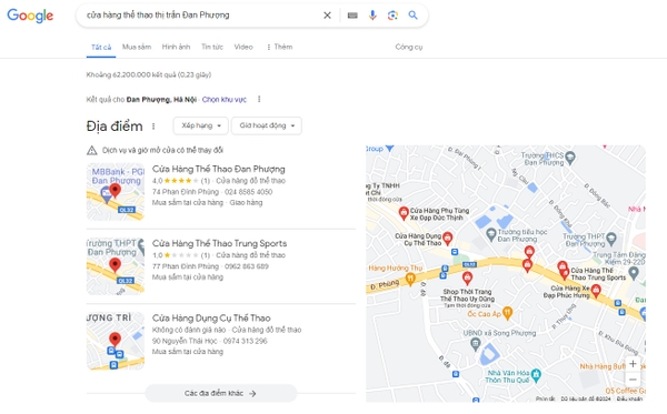 Đan Phượng, Hà Nội là địa điểm có phong trào thể thao và cộng đồng yêu thể thao khá mạnh. Các cửa hàng thể thao ở Đan Phượng không chỉ cung cấp các sản phẩm và dịch vụ cho các môn thể thao phổ biến như bóng đá, cầu lông, và tennis, mà còn đa dạng hóa với các loại hình thể thao khác như leo núi, đạp xe, bơi lội, và yoga. Khách hàng sẽ dễ dàng tìm thấy quần áo, giày dép, dụng cụ tập luyện, và các phụ kiện thể thao từ các thương hiệu nổi tiếng trong và ngoài nước tại các cửa hàng trong khu vực này. Bạn có thể dễ dàng tìm kiếm trên google tại đây.