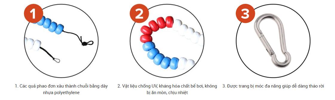 S40725 | Dây phao hồ bơi 25m dùng cho trường học, đường kính phao D80mm | Giá: 12,726,000 đ/dây