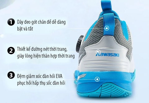 Kawasaki 3302 tự hào là một trong những mẫu giày đầu tiên của hãng áp dụng công nghệ dây buộc dạng núm xoay BOA System, công nghệ này khá phổ biến trên các dòng cao cấp của Yonex hay Lining. Nút vặn số cho phép những điều chỉnh nhanh chóng toàn bộ thân giày, từ ngón chân cho đến mắt cá chân và gót chân cho vừa vặn, thoải mái nhất có thể.