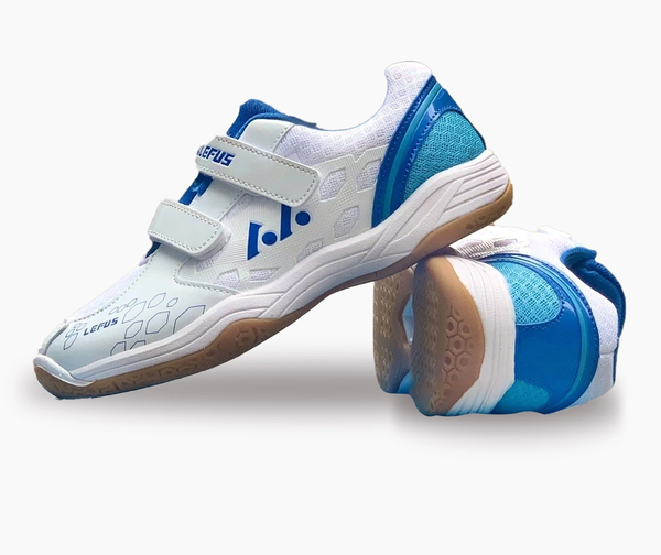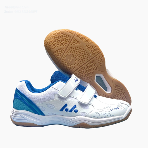 - - Giày cầu lông trẻ em Lefus 1086 M Trắng xanh có phần mũi giày được thiết kế tản lực giúp cho mỗi di chuyển trở nên ổn định hơn. Đế hình tổ ong giúp tăng khả năng bám sàn đồng thời tản lực tốt hơn, giảm thiểu các tác động không tốt đến xương bàn chân.