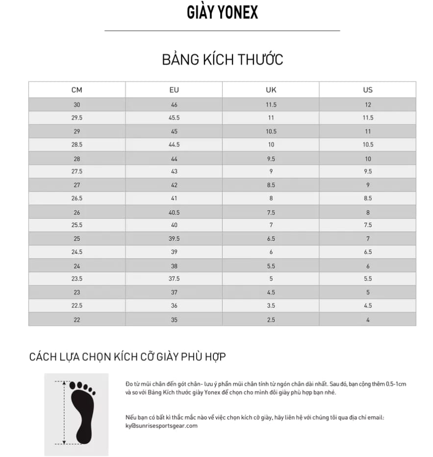 Kích thước: 35, 36, 37, 38, 39, 40, 41, 42, 43, 44, 45, 46, 47