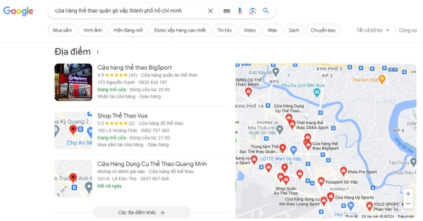 | 15 | 10 | BK SPORT | 0937 141 518 | 63 Quang Trung, Phường 10, Gò Vấp, Thành phố Hồ Chí Minh | Chuyên cung cấp quần áo bơi, gym, yoga, aerobic..v..v. | ||