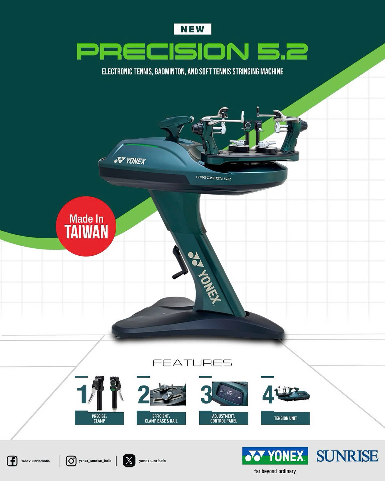 Yonex PRECISION 5.2 là dòng máy căng vợt điện tử thế hệ mới, hỗ trợ căng vợt cầu lông, tennis và soft tennis với độ chính xác cao, thao tác nhanh chóng, dễ sử dụng.
