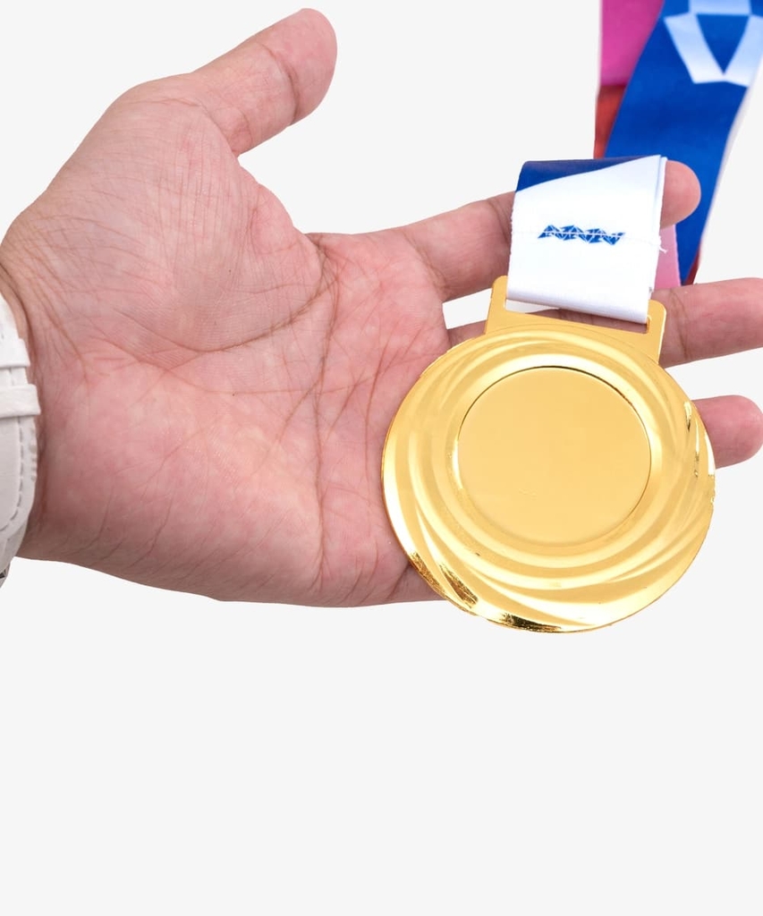 - Chất liệu: Mặt huy chương nhôm aluminum, dây đeo vải polyeste