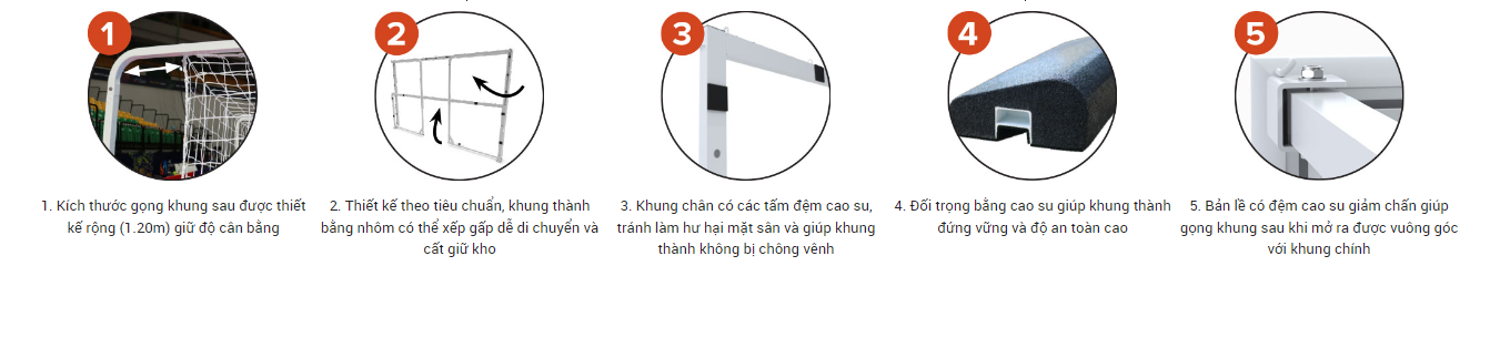Khung thành futsal nhôm xếp gập, phù hợp với tiêu chuẩn châu Âu EN 16579 và FIFA