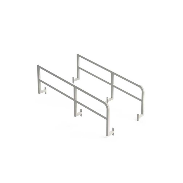 Bộ lan can được làm bằng thép vuông 40mm x 40mm, sơn tĩnh điện trắng, sử dụng cho khối khán đài 4 hàng ghế, sức chứa 16 người