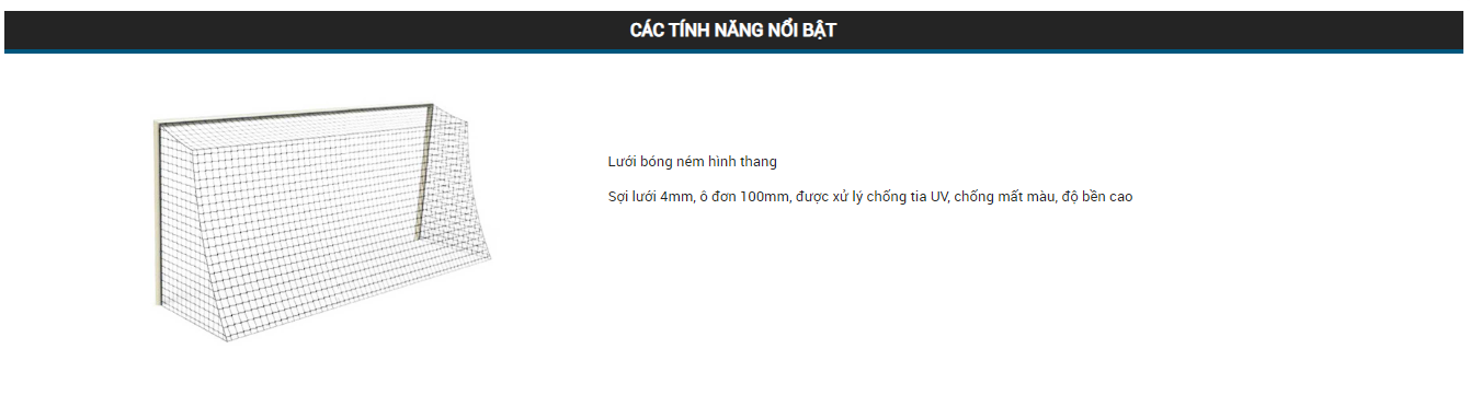Lưới bóng ném. Kích thước: 3.1m x 2m x 0.8m x 1m