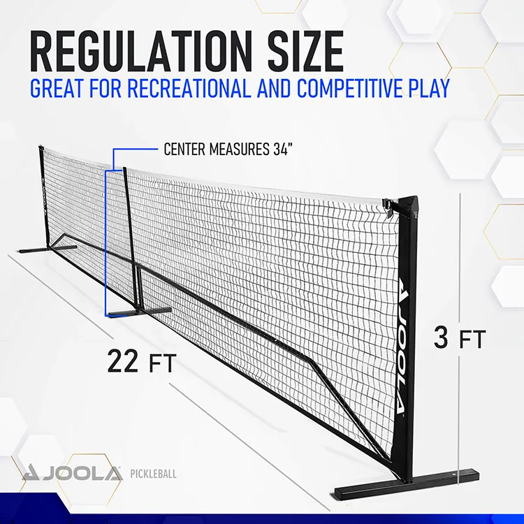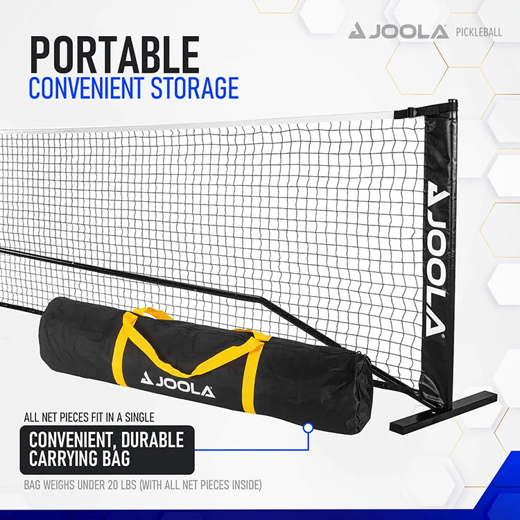 Tạo sân pickleball của riêng bạn mọi lúc mọi nơi với Lưới Pickleball Elemental Joola. Hệ thống dễ vận chuyển này có chiều cao quy định là 91,44cm và chiều dài khuyến nghị của USAPA là 6,71m. Chiều dài 6,71 mét cung cấp thêm 30,48 cm ở cả hai bên để tăng thêm độ bao phủ lưới. Được thiết kế chú trọng đến độ bền, lưới có vải nylon và lưới PPVC không nút thắt. Chân thép khóa liên động rộng, uốn cong giúp tăng độ ổn định. Thiết lập và phá vỡ chỉ trong vài phút. Túi đựng được gia cố giúp thiết lập này cực kỳ dễ vận chuyển.