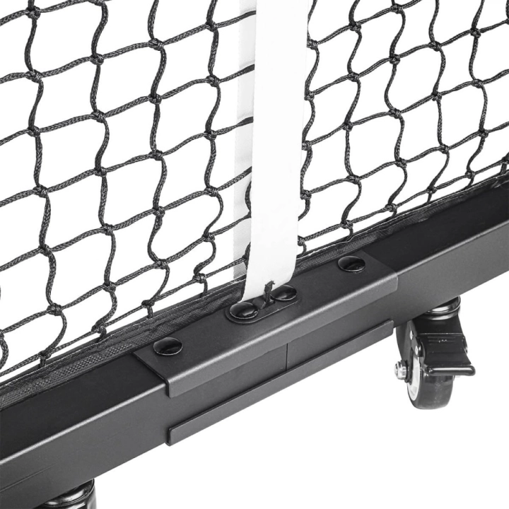 6 bánh xe cho phép lưới dễ dàng lướt trên sân ngoài trời hoặc sàn phòng tập thể dục bằng gỗ. Bánh xe nằm bên dưới khung để giảm nguy cơ vấp ngã và khóa cố định. Lắp ráp dễ dàng, bao gồm các công cụ.