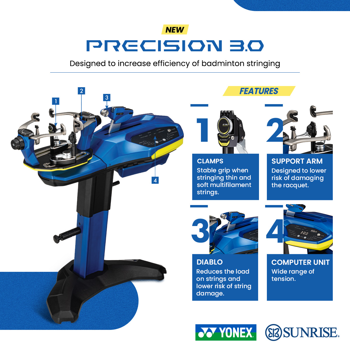 Máy xâu dây YONEX PRECISION 3.0 là loại máy mới được Yonex thiết kế chuyên dụng để xâu dây vợt cầu lông.