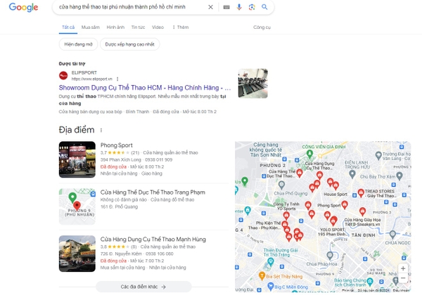 | 3 | 2 | PHONG SPORT | 0938 011 909 | 394 Phan Xích Long, Phường 2, Phú Nhuận, Thành phố Hồ Chí Minh | Shop thể thao tổng hợp chuyên cung cấp sản phẩm cầu lông, tennis, bóng đá, yoga, gym, giày dép thể thao, dụng cụ thể thao, phụ kiện thể thao, đồ đồng phục |