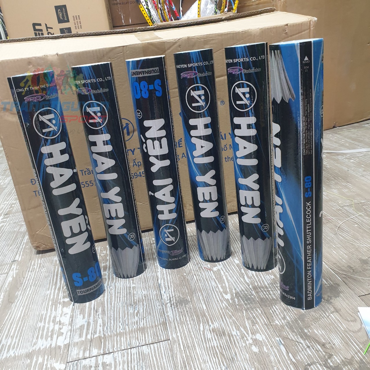 - Hải Yến S80 là ống cầu lông cao cấp nhất của thương hiệu Hải Yến đến từ Việt Nam nổi trội với tốc độ bay trên sân rất ổn định cùng có độ bền bỉ cao.