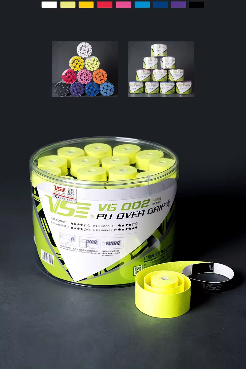 Với chất liệu mới, cầm bám và cực êm, VS đang là loại quấn cán ưa chuộng và tiện dụng nhất của giới cầu lông, tennis bây giờ. Hộp gồm 60 chiếc, có nhiều màu sắc lựa chọn, giá thành rẻ nhất thị trường.