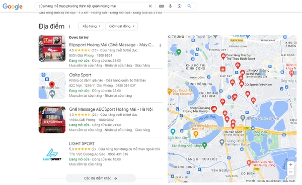 | 4 | LIGHT SPORT | 0868 431 816 | TT6.1/28 Đường Ao Sào, Khu Đô Thị, Thịnh Liệt, Hoàng Mai, Hà Nội | Chuyên cung cấp phụ kiện thể thao các loại, vợt cầu lông..v.v.. |