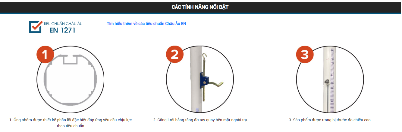 S30170 | Trụ bóng chuyền thi đấu nhôm D90mm, sơn tĩnh điện trắng, điều chỉnh chiều cao lưới bằng ray và thanh trượt, căng lưới bằng tăng đơ tay quay, không kèm nòng | 12,805,000đ/Bộ
