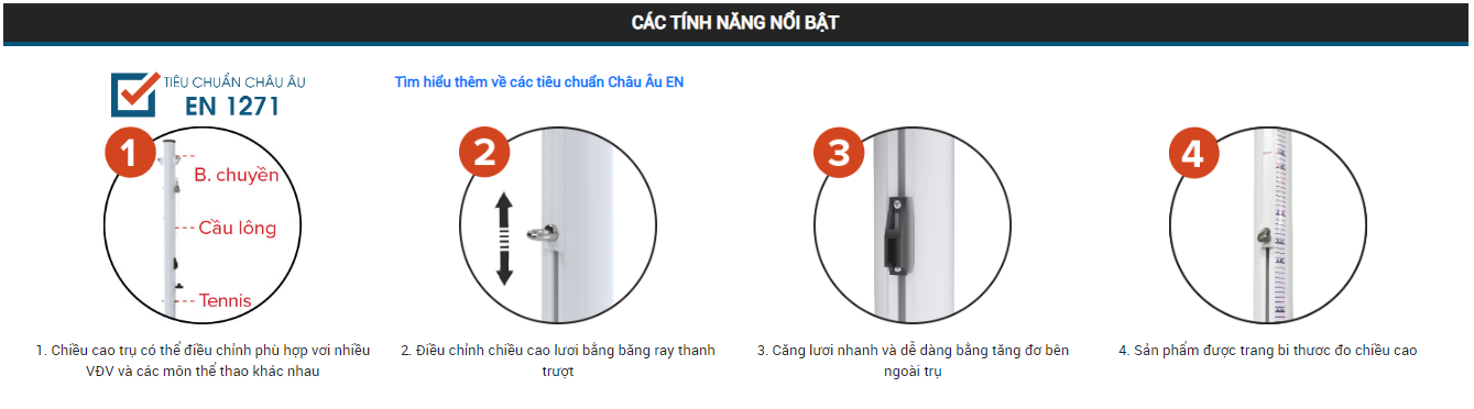 | Chiều cao | Điều chỉnh từ 1.07m đến 2.45m |