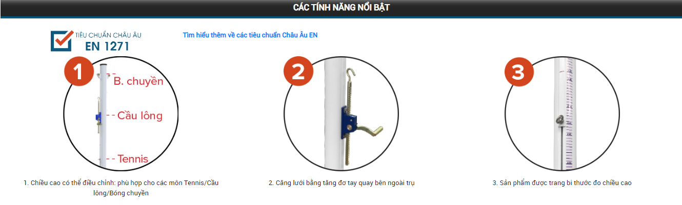 Trụ bóng chuyền trung gian dùng cho tập luyện, cấp độ C