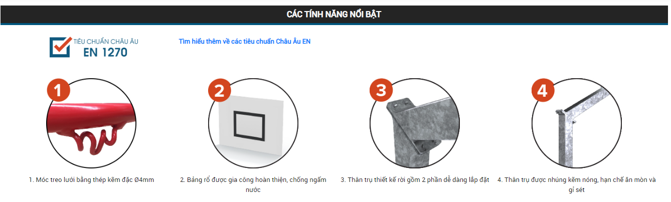 | Kiểu bảng rổ | Bảng rổ composite, hình chữ nhật |