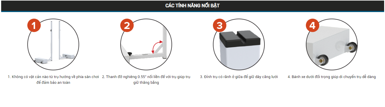 Trụ cầu lông di động dùng cho tập luyện. Đối trọng bằng bê tông nặng 30kg