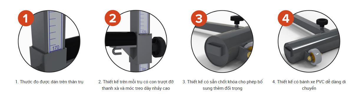Trụ nhảy cao tập luyện. Thân trụ ống kẽm vuông 40x40mm. Đối trọng gang 20kg