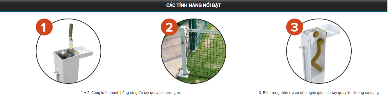 Căng lưới bằng tăng đơ trong và tay quay. Giao kèm bộ định vị nền