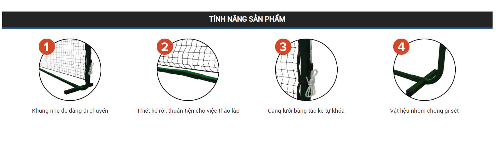 Trụ pickleball di động nhôm. Khung chính ống nhôm 40 x 40mm. Thanh nối thép. Gợi ý sử dụng lưới tùy chọn như mã sản phẩm S25948.