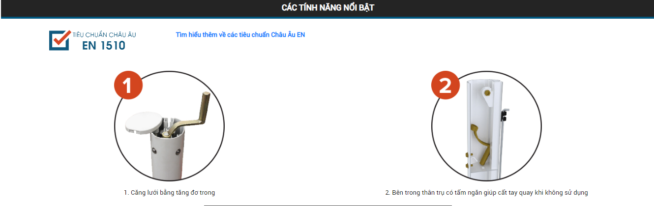 Căng lưới bằng tăng đơ tay quay trong. Sản phẩm không giao kèm nòng chôn