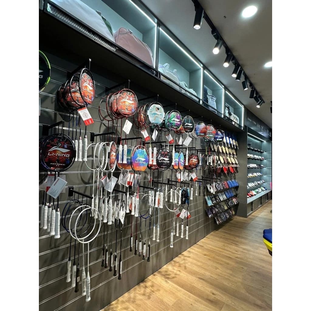 Móc treo vợt cầu lông, vợt tennis, vợt pickleball - loại cài vào rãnh tấm nhựa hoặc cài rãnh tấm saltwall