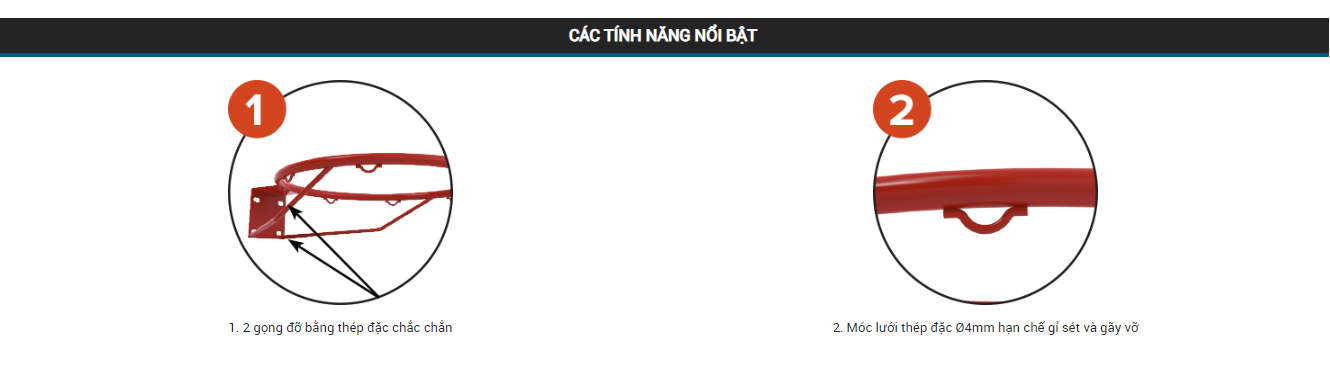 | Đường kính vành rổ | 450mm |