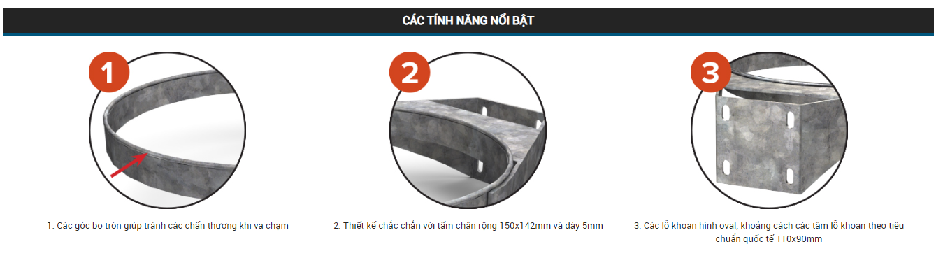- Vành rổ tiêu chuẩn bằng thép tấm, nhúng kẽm nóng. Đường kính vành rổ: 450mm