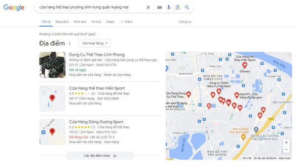 | 5 | Dụng cụ thể thao Linh Phong | 0946933579 | 251 Đ. Lĩnh Nam, Vĩnh Hưng, Hoàng Mai, Hà Nội | Chuyên cung cấp dụng cụ thể thao, giàn tạ,v,v,, | https://maps.app.goo.gl/TksXmKZ2WbYemU2M9 | |