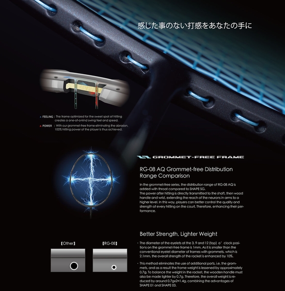 Vợt khỏe, cứng, dùng cho VĐV không chuyên, chuyên tấn công. Có 2 độ cứng khác nhau thể hiện trên chụp cán.