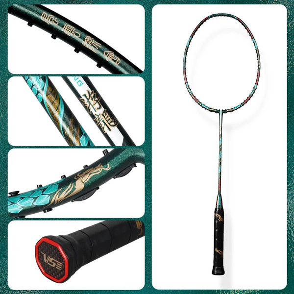 - - Vợt sử dụng một loại vật liệu sơn đặc biệt có khả năng phản quang, hấp thụ ánh sáng, các vảy rồng hiện lên lấp lánh như được mạ vàng tựa như đang được ngọc rồng bao quanh cực kỳ đẹp mắt, độc đáo.
