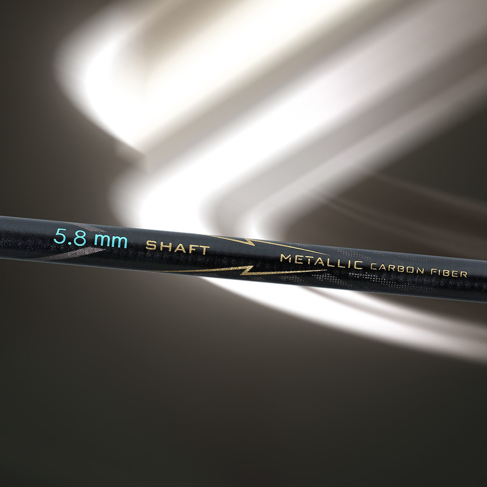 Sự kết hợp giữa thông số kỹ thuật nhẹ và trục SỢI CARBON KIM LOẠI 5.8 tạo nên khả năng phục hồi đáng kinh ngạc, tạo điều kiện cho động lượng phân biệt được trên đầu vợt. Điều này tạo ra các cú đánh phẳng nhanh và đàn hồi, kiểm soát chính xác các cú đánh thả và vị trí đập, khả năng kiểm soát và định hướng tuyệt vời. Vợt cho phép tấn công dễ dàng nhưng mạnh mẽ, phù hợp với người chơi ở mọi cấp độ thích phong cách chơi tấn công.