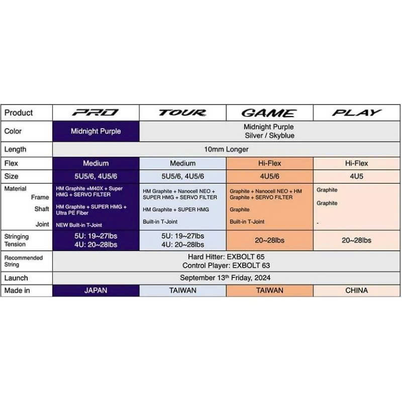 - Flex: Hi-Flex - độ dẻo cao giúp vợt dễ uốn cong, tạo ra lực đánh mạnh và ổn định.