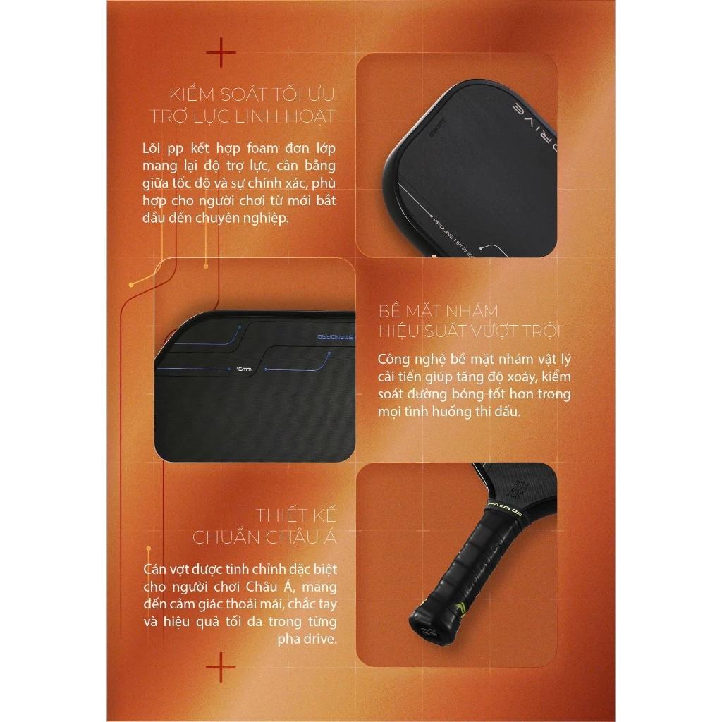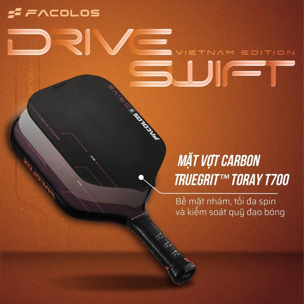Vợt pickleball Facolos Drive Swift Standard (16MM) mặt vợt 3 lớp Carbon tăng độ đàn hồi và trợ lực